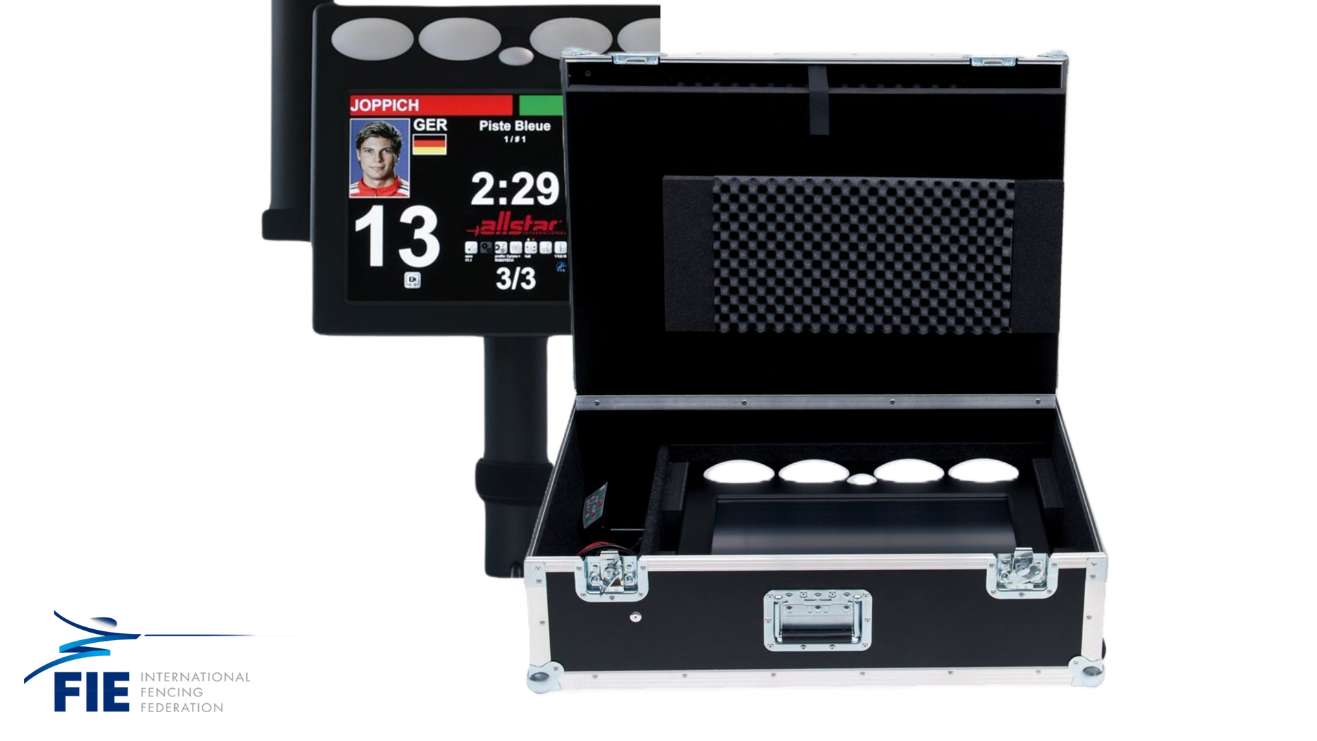 In Verbindung mit dem System-Standfuß* und den aufsteckbaren Hochleuchten* ist der FMA21 derzeit das wohl leistungsfähigste und innovativste Fechtmeldegerät auf dem Markt.