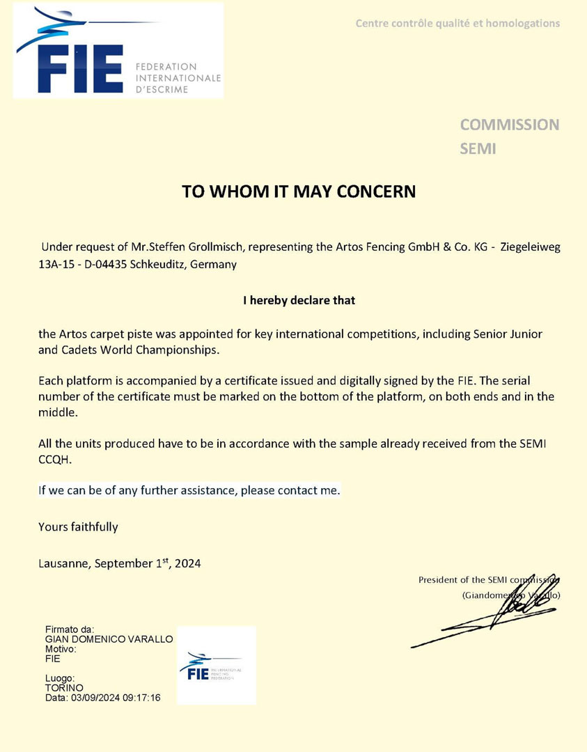 Our textile fencing piste is FIE approved.