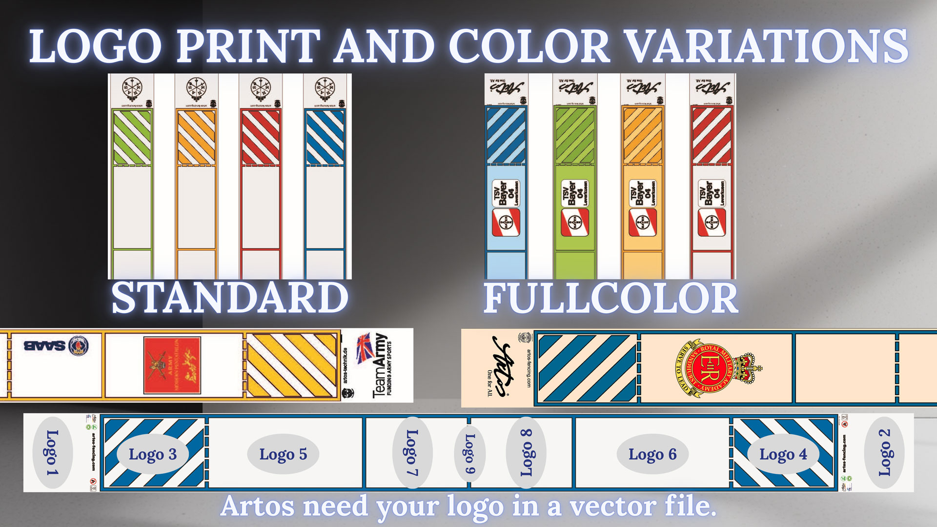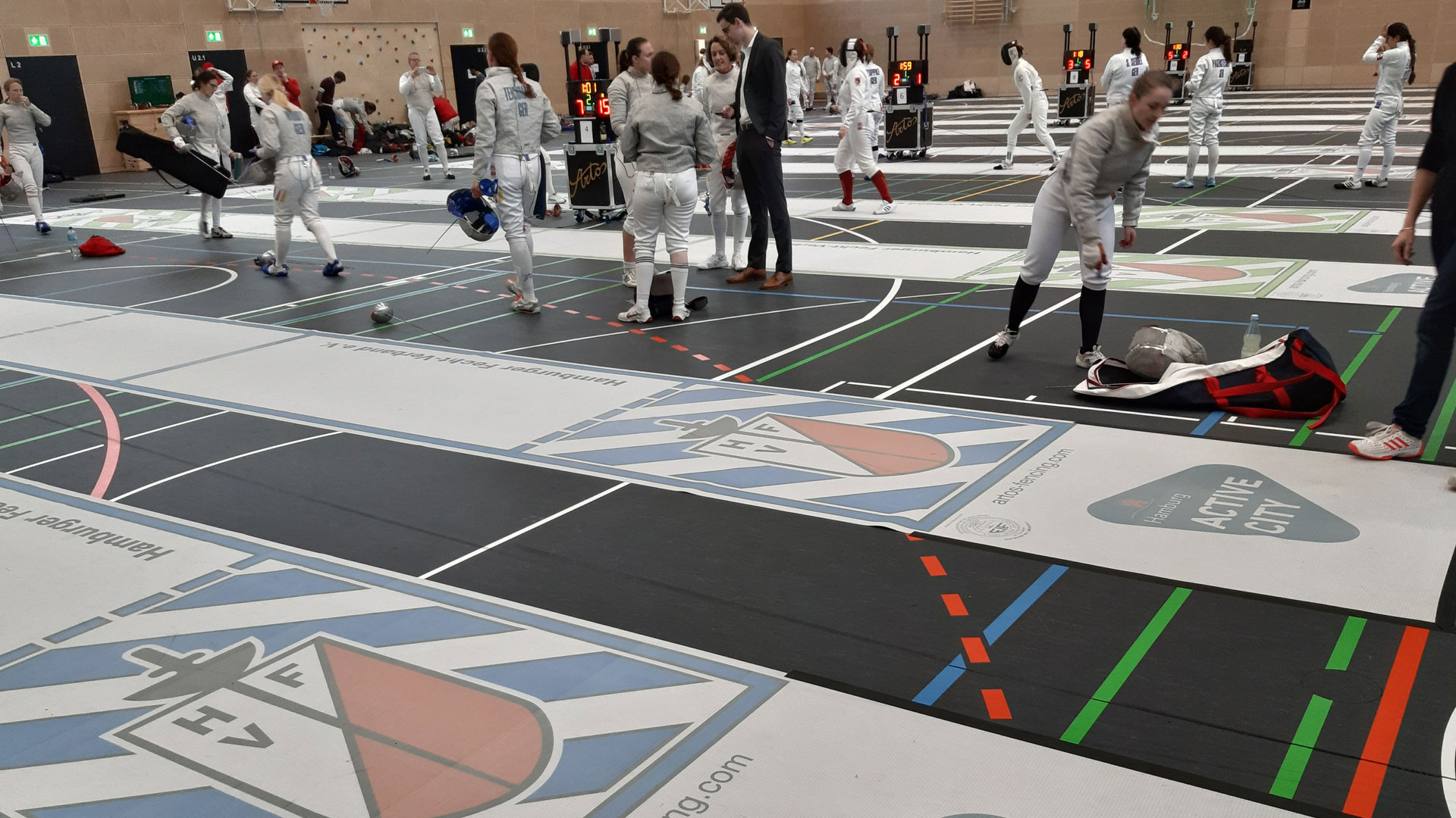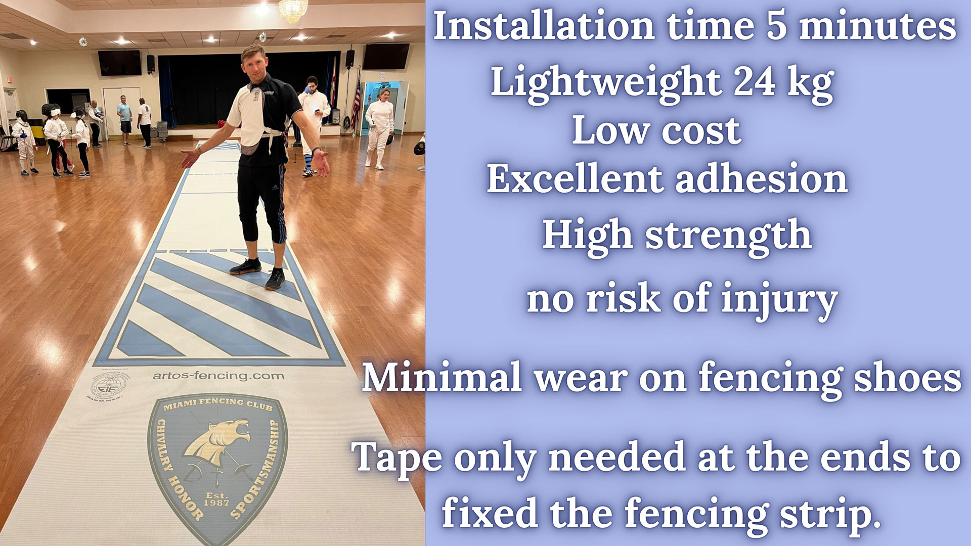 The fencing piste can be customized with your club or sponsor logo upon request!