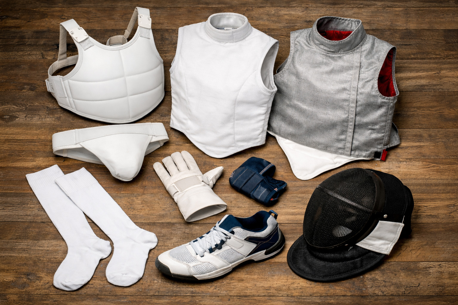 - Fencing jacket (with reinforced weapon arm)